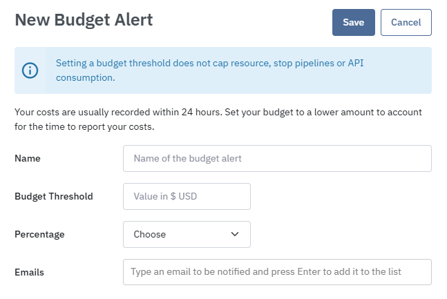 Choose between 90% or 100% of your configured budget to get early warnings before full consumption.