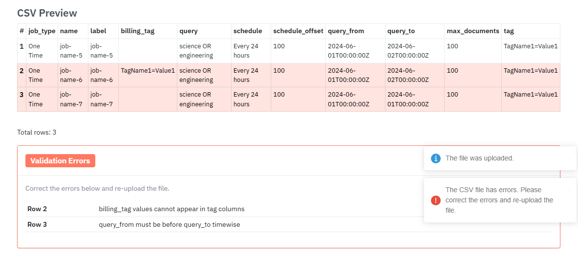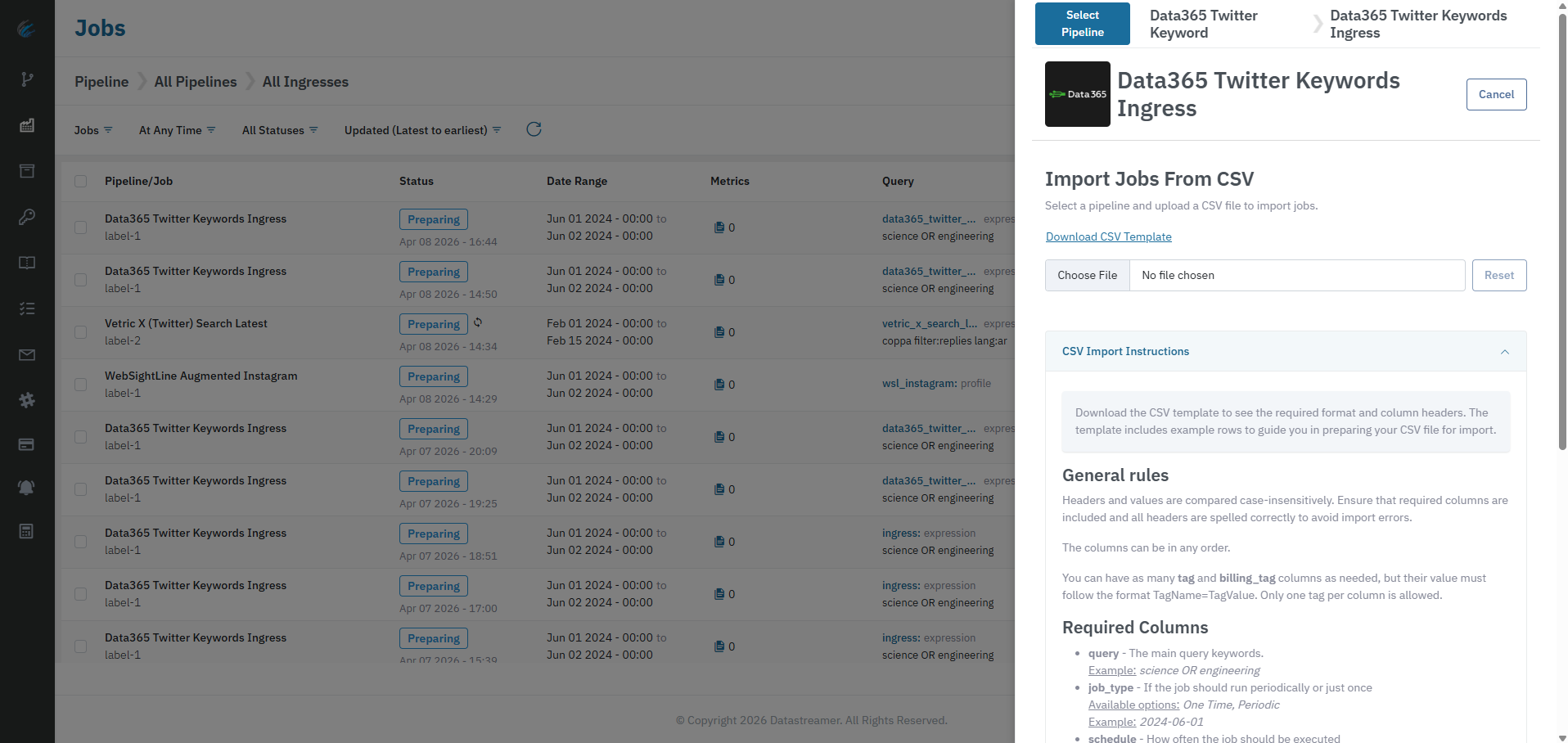 - Fill the CSV file with your job data or use it as example to generate yours.