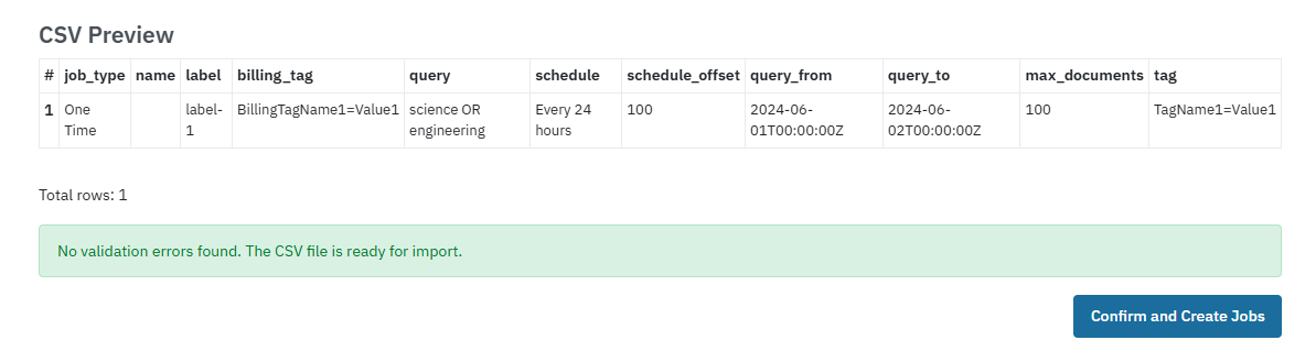 Example of CSV Import Preview with valid data and ready to be uploaded