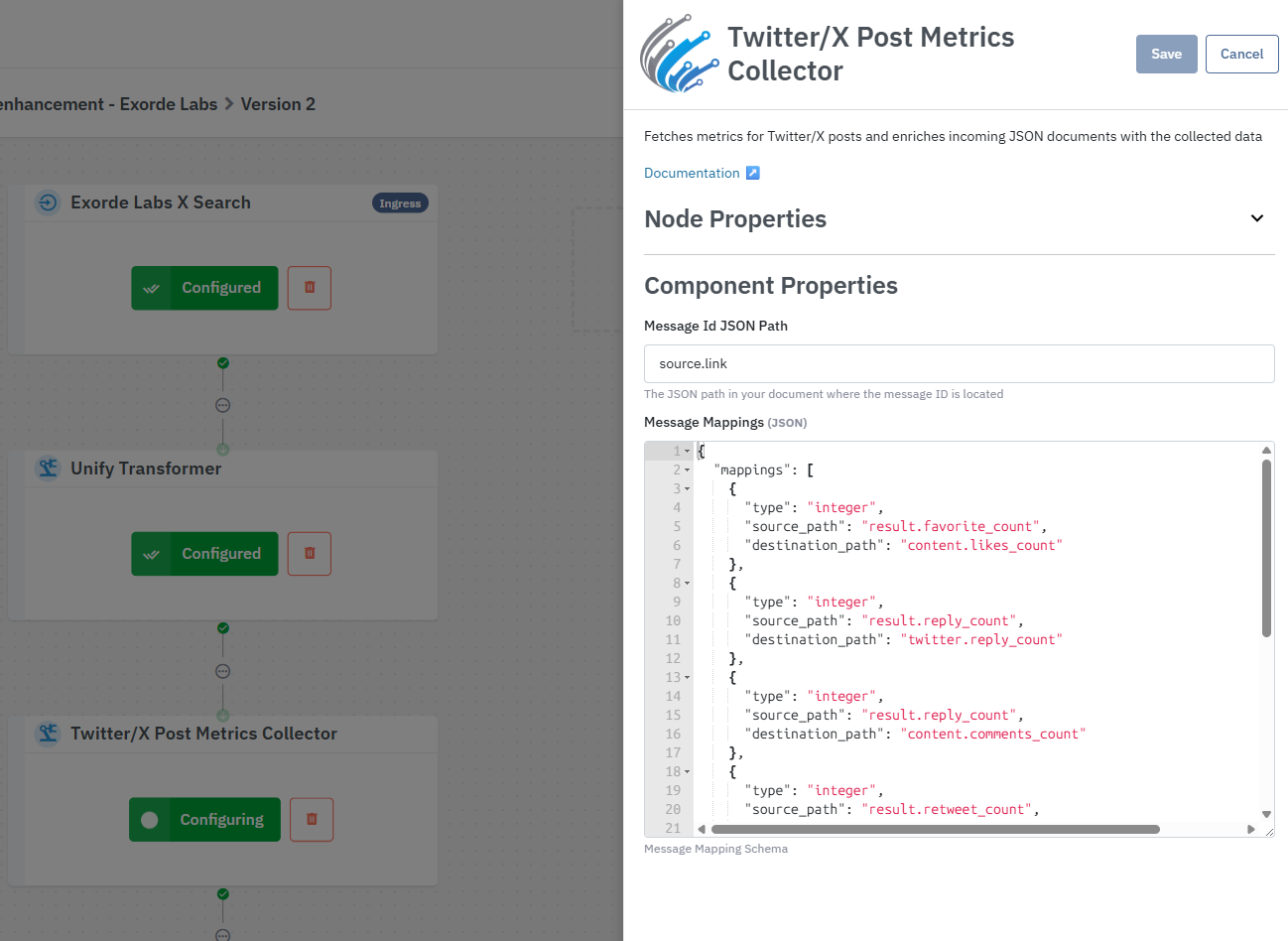 You can add and configure Twitter/X Post Metrics Collector in your pipeline by adding the component as an operation.