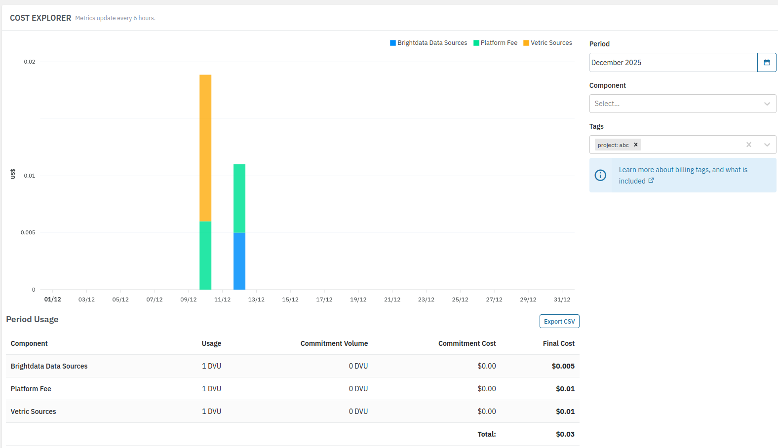 Billing tags are a powerful feature that allows you to categorize and filter pipeline usage data for detailed cost analysis. By adding billing tags to your pipeline jobs, you can track costs at a more granular level, such as by department, project, client, or environment.