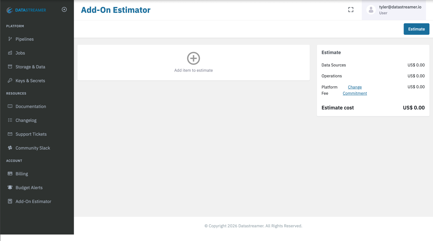 The Pricing Calculator is an estimation tool and does not change you commitments, usage of any features, or billing. It is meant to be an estimation tool for the purpose of exploring future options and roadmap planning.